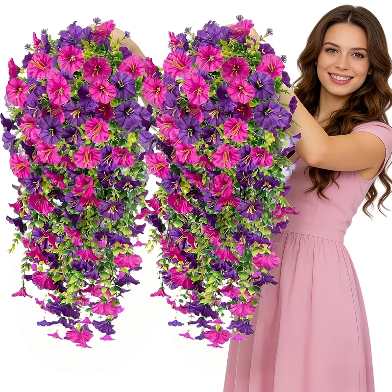 2pcs Set of Artificial Mixed-Color Morning Glory Flowers, Suitable for Indoor/Outdoor Home Decor, Wedding Arrangements, Parties, Gardens, DIY, Courtyards, Offices, Hotels, Housewarming Gifts, New Year, Valentine's Day, and New Year Decorations