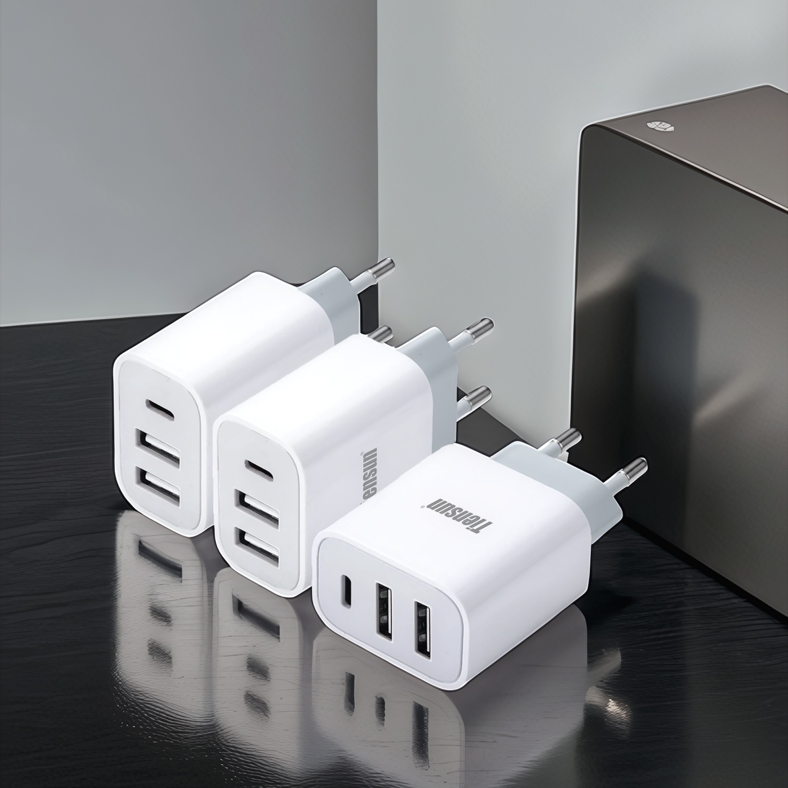 Power Adapter, 2USB+1Type-C Charger, A+C 3-in-1 Charger, Multi-Port Fast Charging Adapter