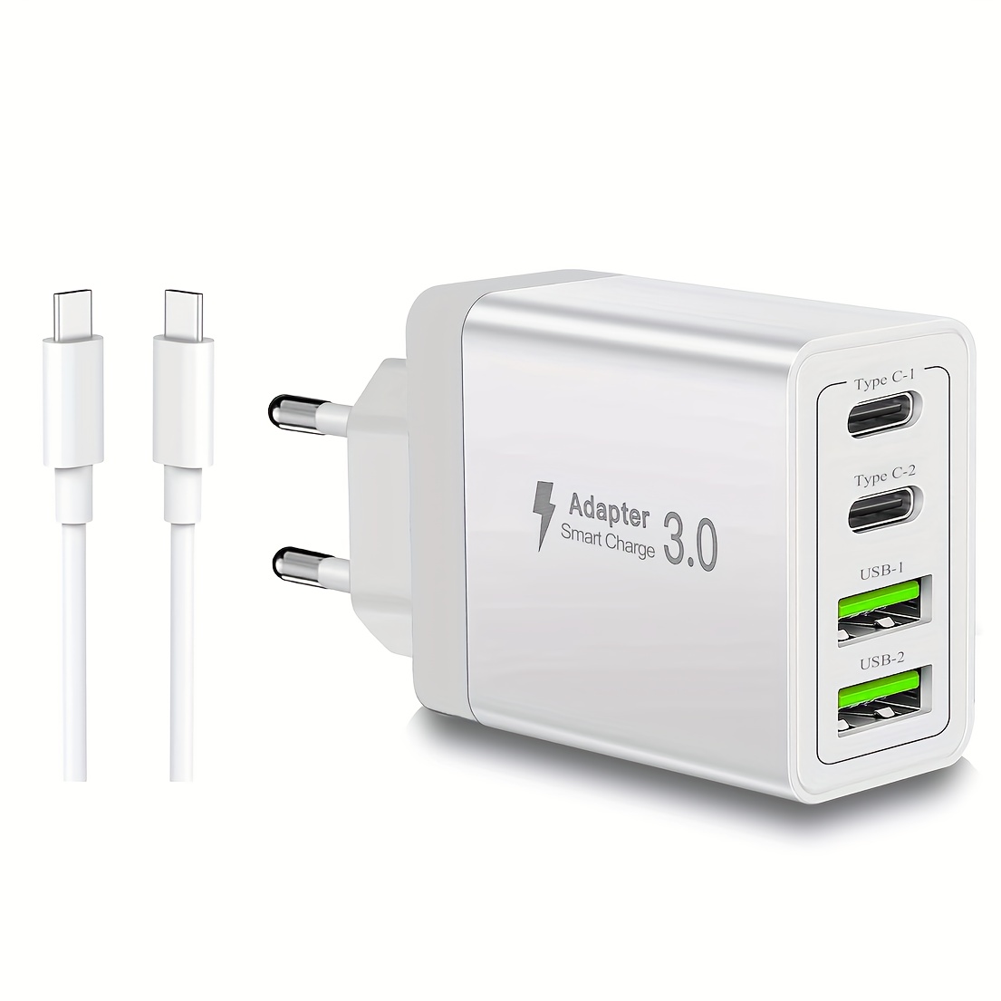4-Port USB Charger Adapter with Smart Charging Technology, 10W/5V2A Fast Charging, 2A2C Dual Input/Output, 4 USB-C Ports, Compact Design for iPhone 16/15/14/13/12/8, for,,,, Pixel - European Plug, Usb Charger Adapter