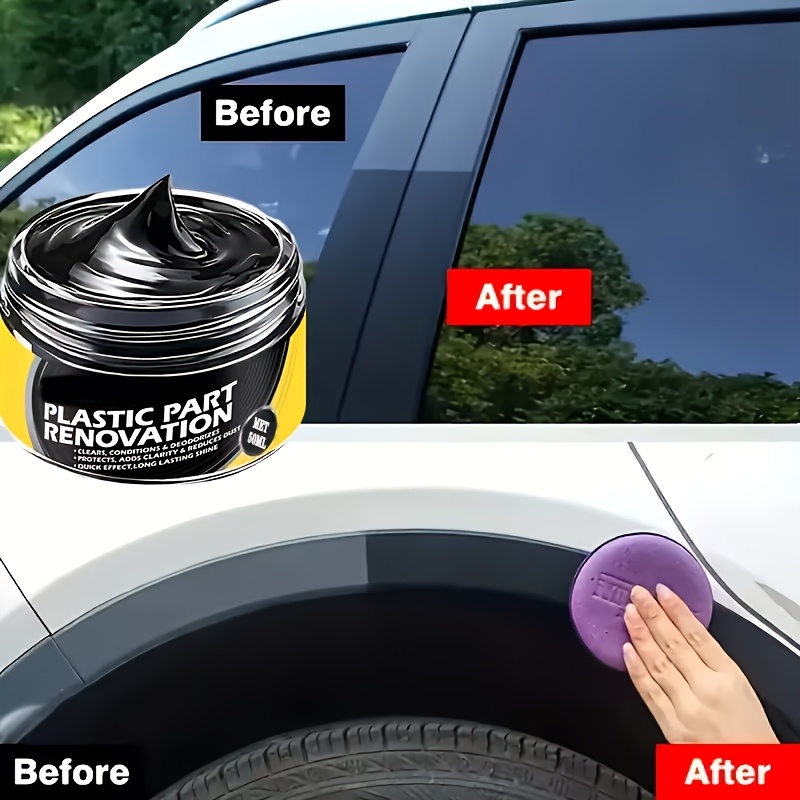Powerful Plastic Restorer - All-in-One Black Revival with Glossy Finish - Prevents Graying, Easy Application with Cloth or Sponge. Suitable for Cars, Trucks, SUVs, Motorcycles, Furniture, Appliances. Repairs and Protects Plastic Surfaces