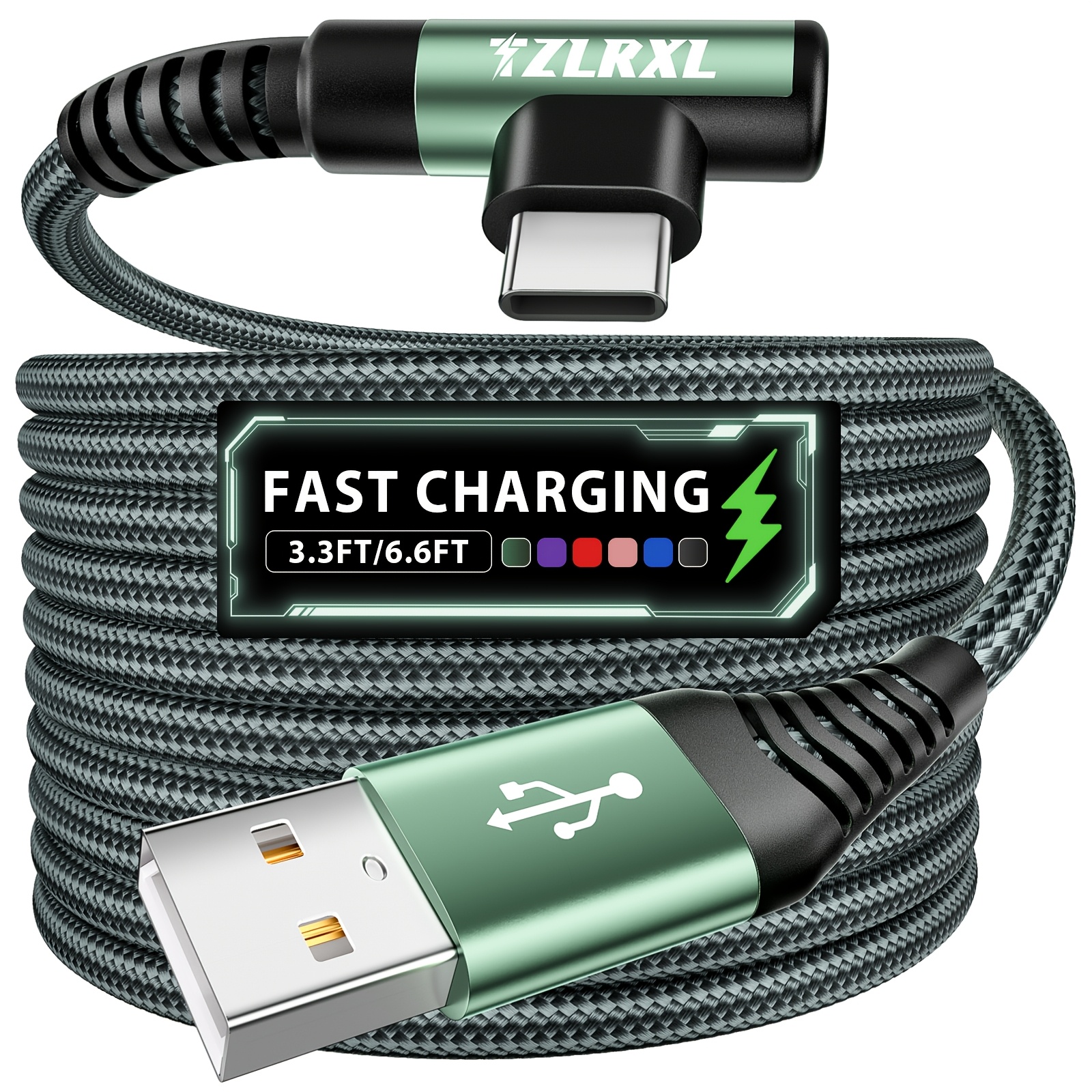 Type C Fast Charging, Right Angle USB to USB C Cable Braided, USB C Charging Cable for Samsung,for iPhone,for Huawei and More Smartphone, Tablet, Laptop