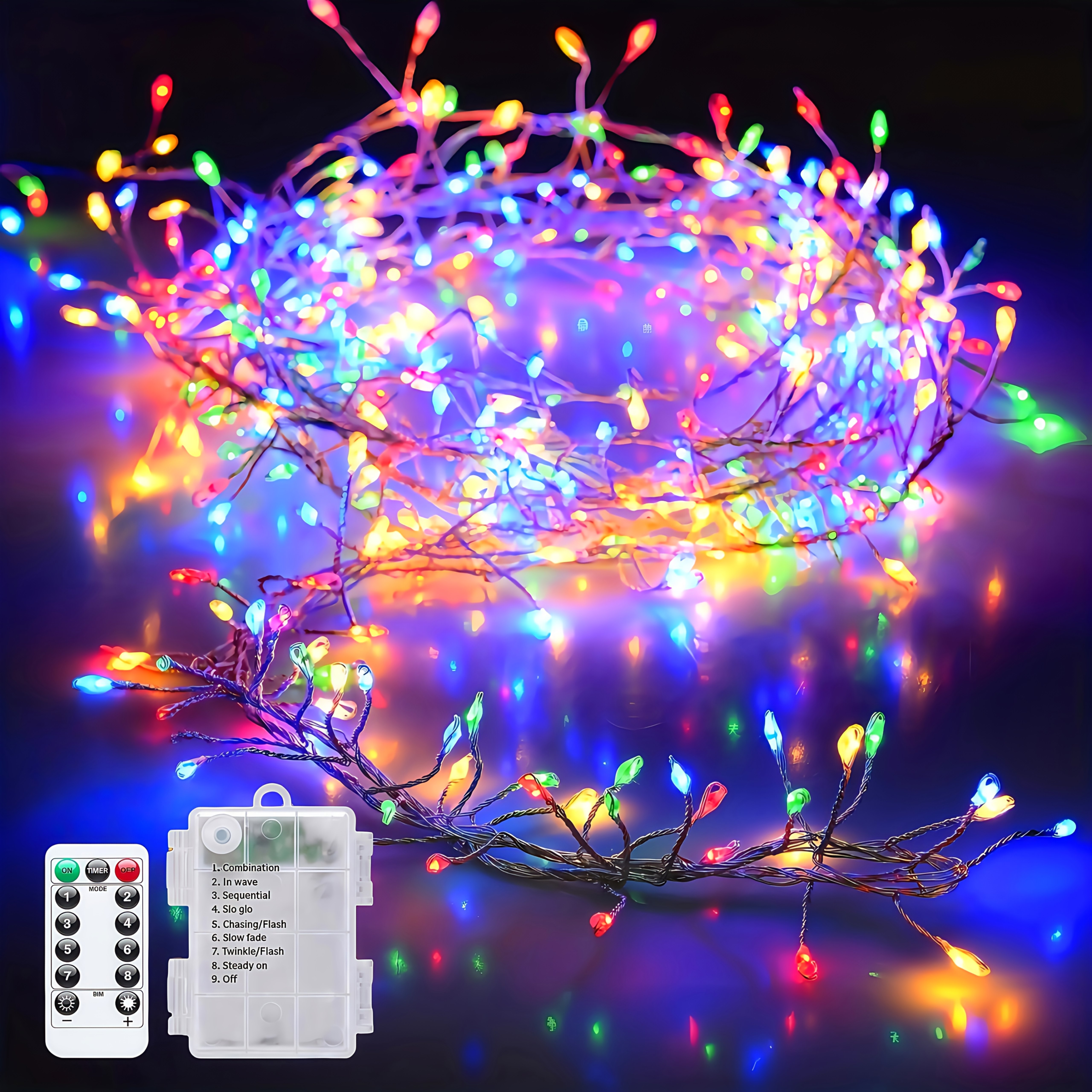[Fairy String Lights] 1 Fairy String Lights, 200/100/50 LED Bulbs, 8 Modes with Remote Control and Timer, Indoor/Outdoor Battery-Powered Classic Decoration Lighting for Bedroom Parties, Garden Tree Decorations, Christmas Halloween Holiday Decor Halloween decorations, Chrismas decorations