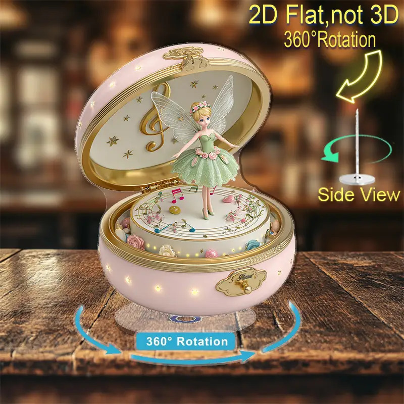 2D Flat, 1 Rotating Music Box Statue with 360° Rotation, Golden Wings Angel Character and Lullaby Sound - Acrylic Wound/Compatible AA for Home Decor, Birthday Gift, Suitable For Women, Ballet Dancer Music Box, Music Box Ballet Dancer