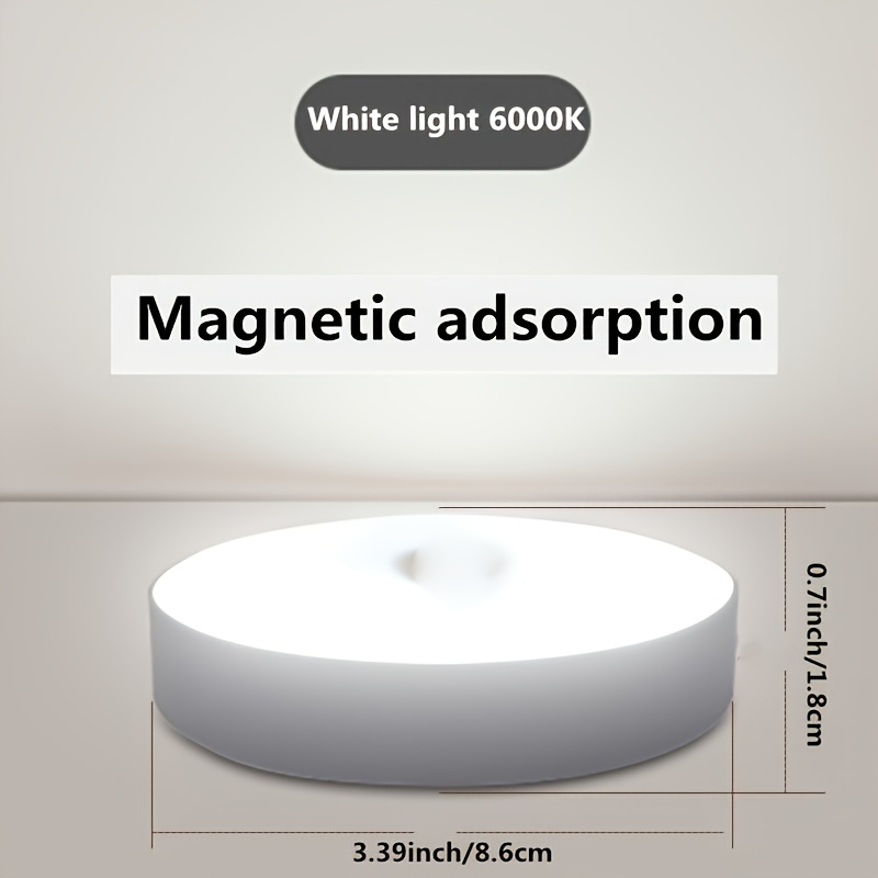 NBBUFF Motion-Activated LED Light Featuring Three Color Temperatures, Adjustable Brightness, a 360° Panoramic Human Sensor, And USB Rechargeable Capabilities. Ideal for Use in Bedrooms, Beside Beds, on Stairs, in Cabinets, And on Desks