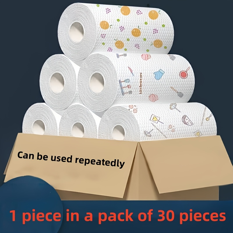 30pcs Multi-Purpose Kitchen Towel Rolls | Washable, Reusable, Oil-Free, Non-Stick, Ideal for Kitchen, Bathroom, Bedroom - Polyester, Fruit Theme