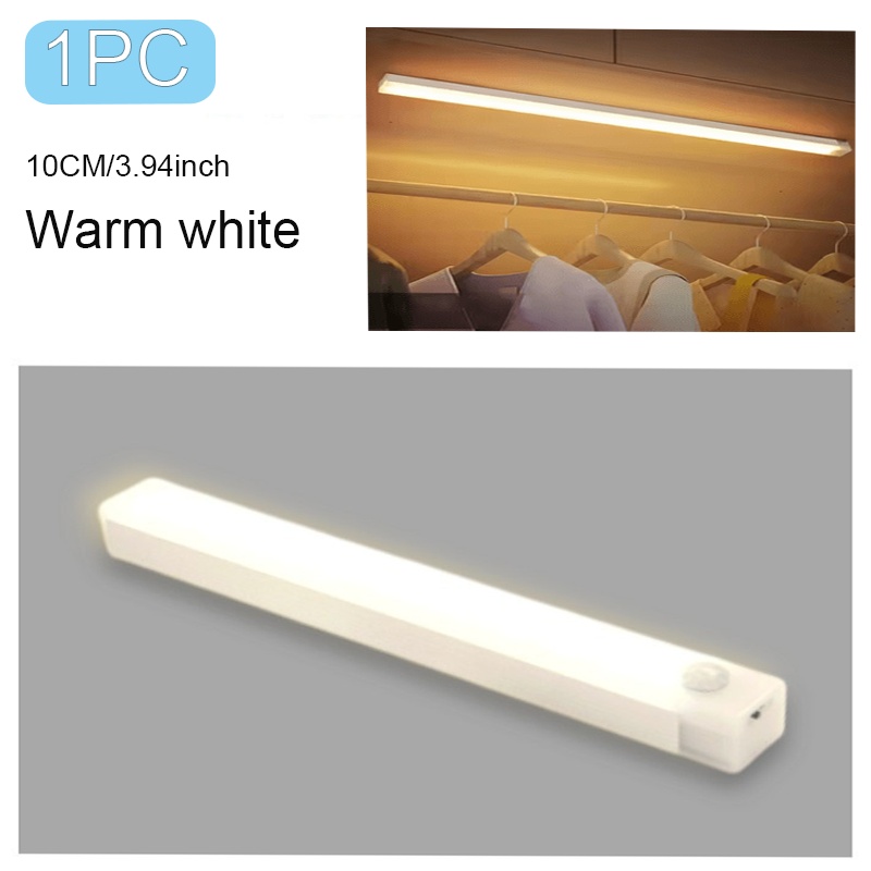 LED Under Cabinet Light with Motion Sensor - USB Rechargeable, Warm White, Magnetic Strip, Suitable for Kitchen, Stairs, Hallway, Magnetic Induction Light Strip, Cold White/Warm Light Indoor Night Light, Suitable for Kitchen, Stairs, Hallway