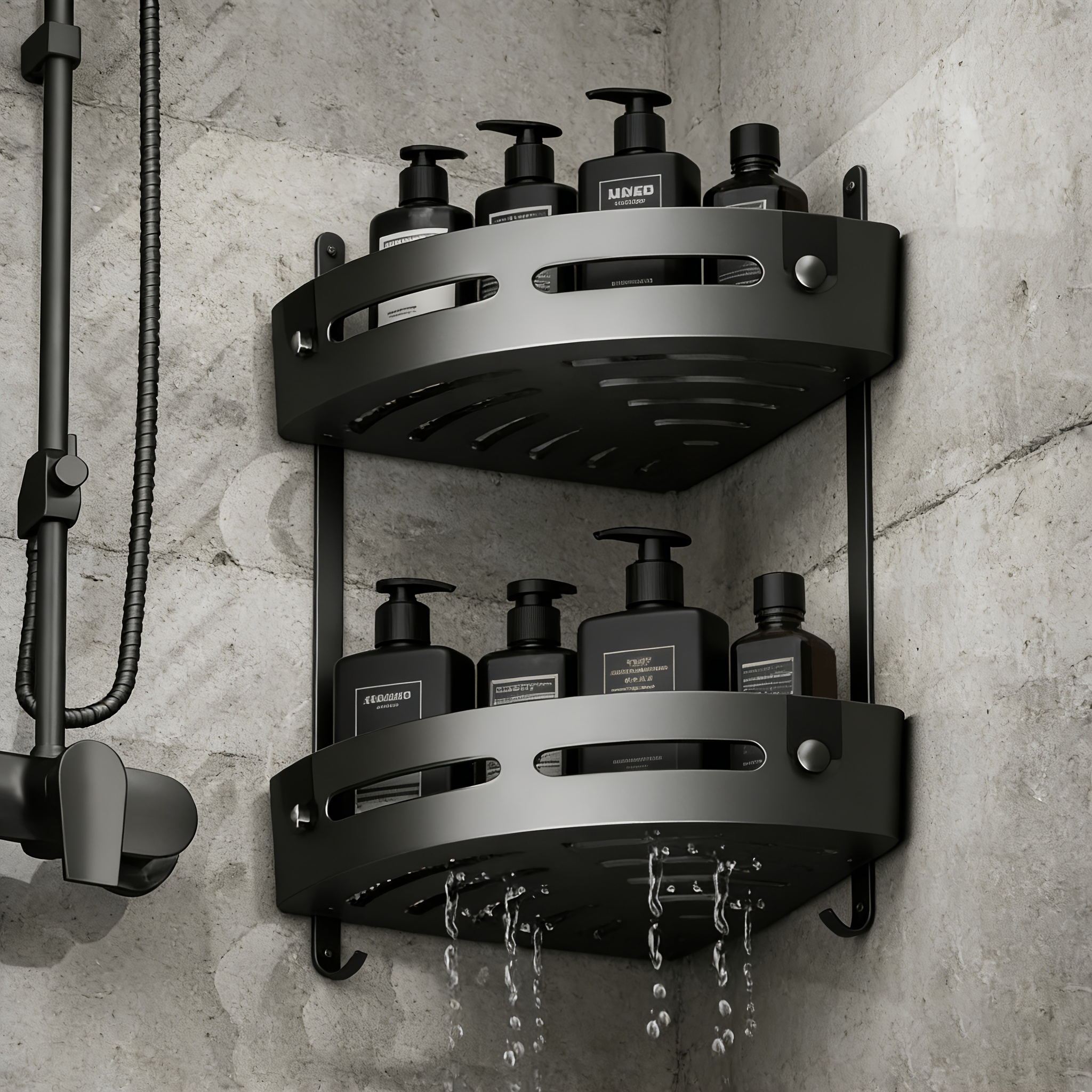 2-pack Bathroom Corner Shelves, No Drilling Required, Shampoo Holder with Heavy-duty Hooks, Enlarged and Widened for Neatly Storing Multiple Bottles of Bath Products, Suitable for 90-degree Corners, High Load-bearing Capacity, Damage-free Adhesive