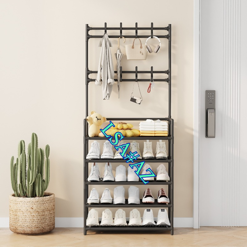 5-Tier Heavy-Duty Metal Coat Rack and Shoe Shelf with Umbrella Stand, Hat Hangers - Space-Saving Vertical Suitable for Apartment, Minimalist Modern Clothing Organizer for Entryway, Bedroom, Doorway