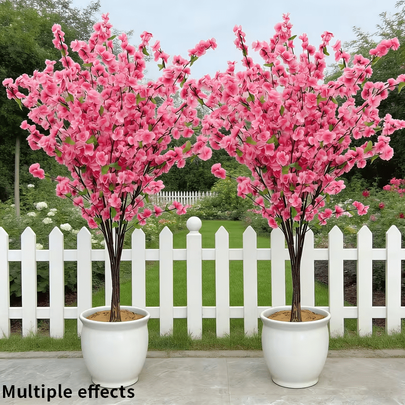 2pcs Premium Artificial Cherry Blossoms, Long Branch Style, Lush Foliage, Sturdy Structure, Home And Outdoor Faux Greenery | Suitable for Indoor/Outdoor Decor, Courtyard, Porch, Garden, Lawn, Pool, Wedding, Mall, Hotel, Balcony | Ideal for Easter