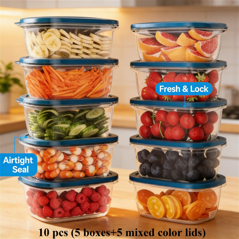 10-Pack Reusable Food Storage Containers, Portable Lunch Box for Fruits And Vegetables, Leakproof Lids for Food Containers, Food Storage Containers with Lids – Stackable Fridge Organizer for Onions, Cilantro, Ginger, Garlic, Noodles