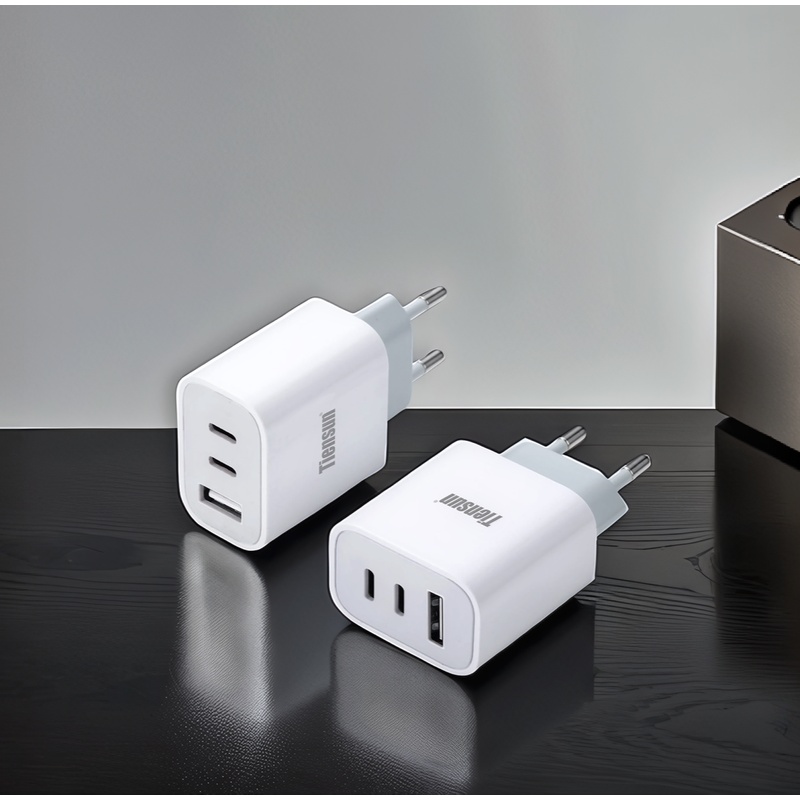 Power Adapter, 2USB+1Type-C Charger, A+C 3-in-1 Charger, Multi-Port Fast Charging Adapter