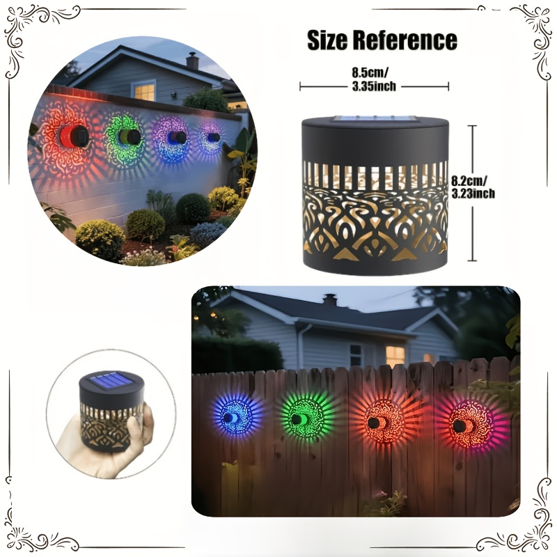 Mandala Lamp, Solar-Powered Outdoor Fence Light with Projection Wall Light, Colorful Mandala Themed Design LED Solar Light, Suitable for Garden, Patio And Stair Lighting, Courtyard, Backyard And Front Door Decoration, Christmas