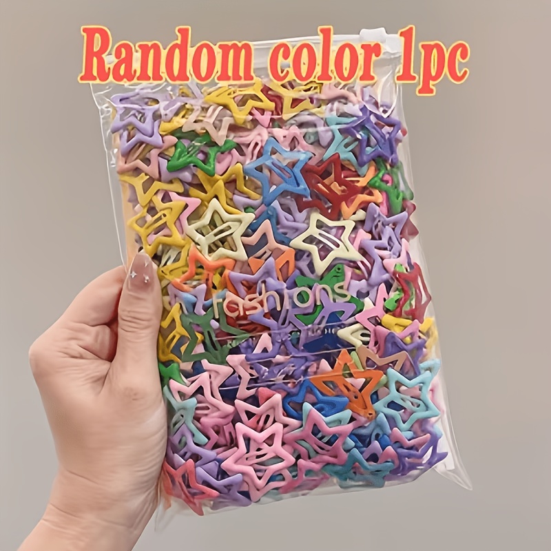 48 Colors of Star-Shaped Hairpin Set-Random 1pc Delivery Color Hollow Metal Five-Pointed Star Hairpin, Suitable for Women-Cute Bohemian Style Hair Additions