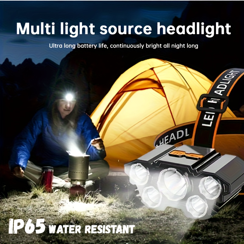 1pc 5 LED Ultra Bright Emergency Light with USB Charging, 14500 Battery, Portable ABS Headlamp Suitable for Camping, Hiking, Fishing, Repairing, etc. Scenes. Power Indicator and SOS Light, Matte Finish, Black and Orange Design, Combines Brightness, Portability, and Multifunctionality, Practical Tool for Outdoor Activities, Night Work, and Emergency Lighting