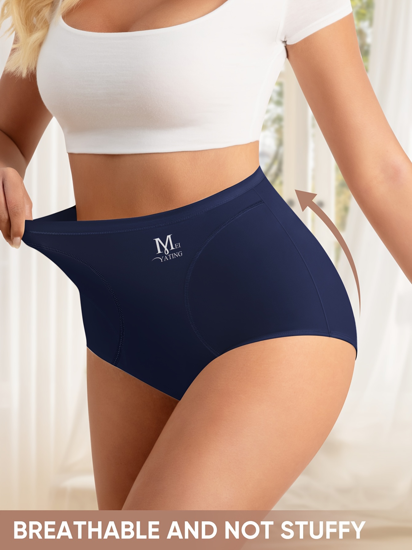 MEIYATING Brand Exclusive - Available in Multiple Colors, Seamless Underwear, High-Waisted Anti-Roll Edge, Women'S Waist- And Lifting Lingerie, One Size Fits XS-XXL, Medium Elasticity, Front Double-Curve Letter Embellishment