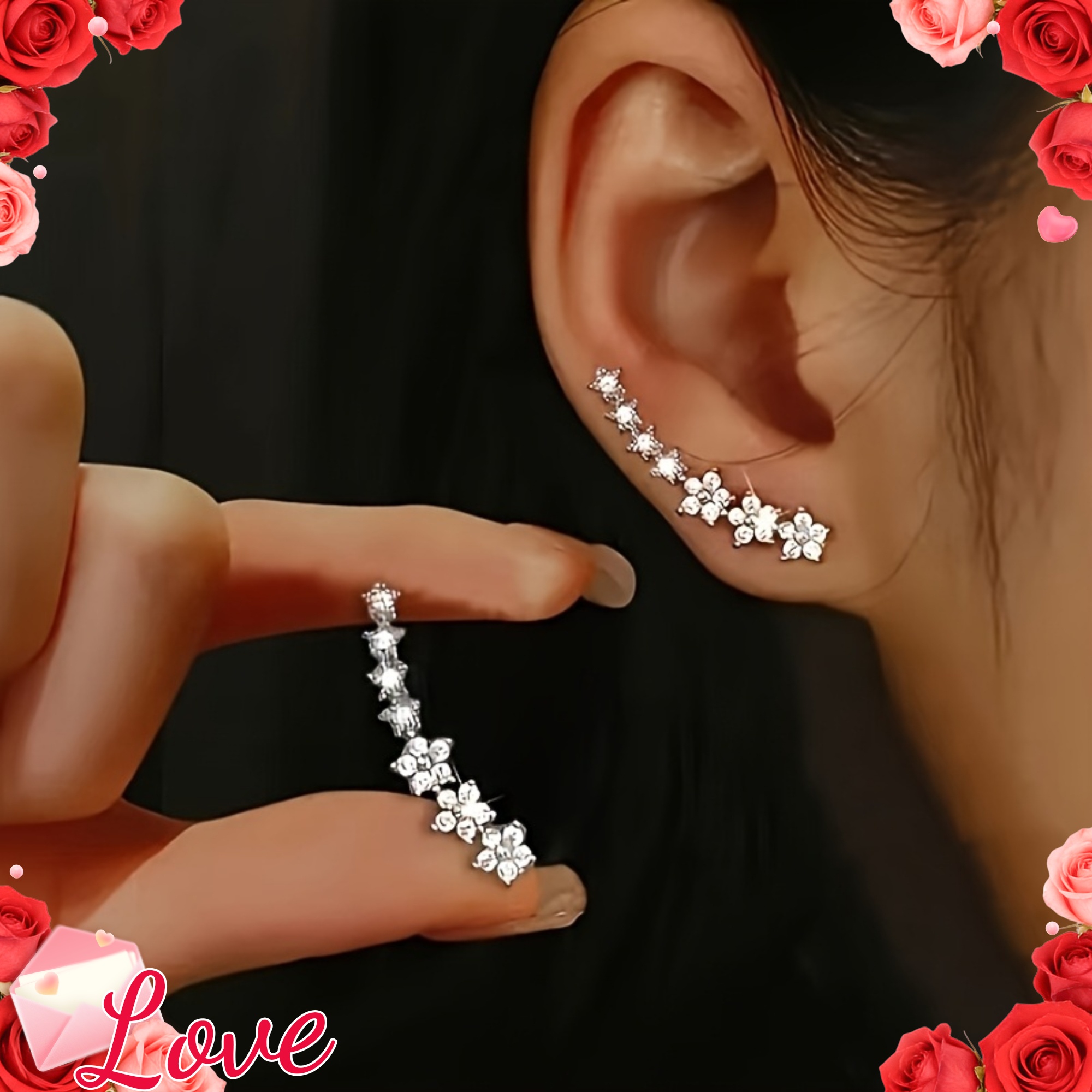 Stainless Steel Women'S Sequined Floral Earrings - Elegantly Framed Stud Earrings, Low-Allergen Floral Studs Suitable for Sensitive Skin Tones, Perfect for Valentine'S Gifts, Weddings, And Everyday Wear