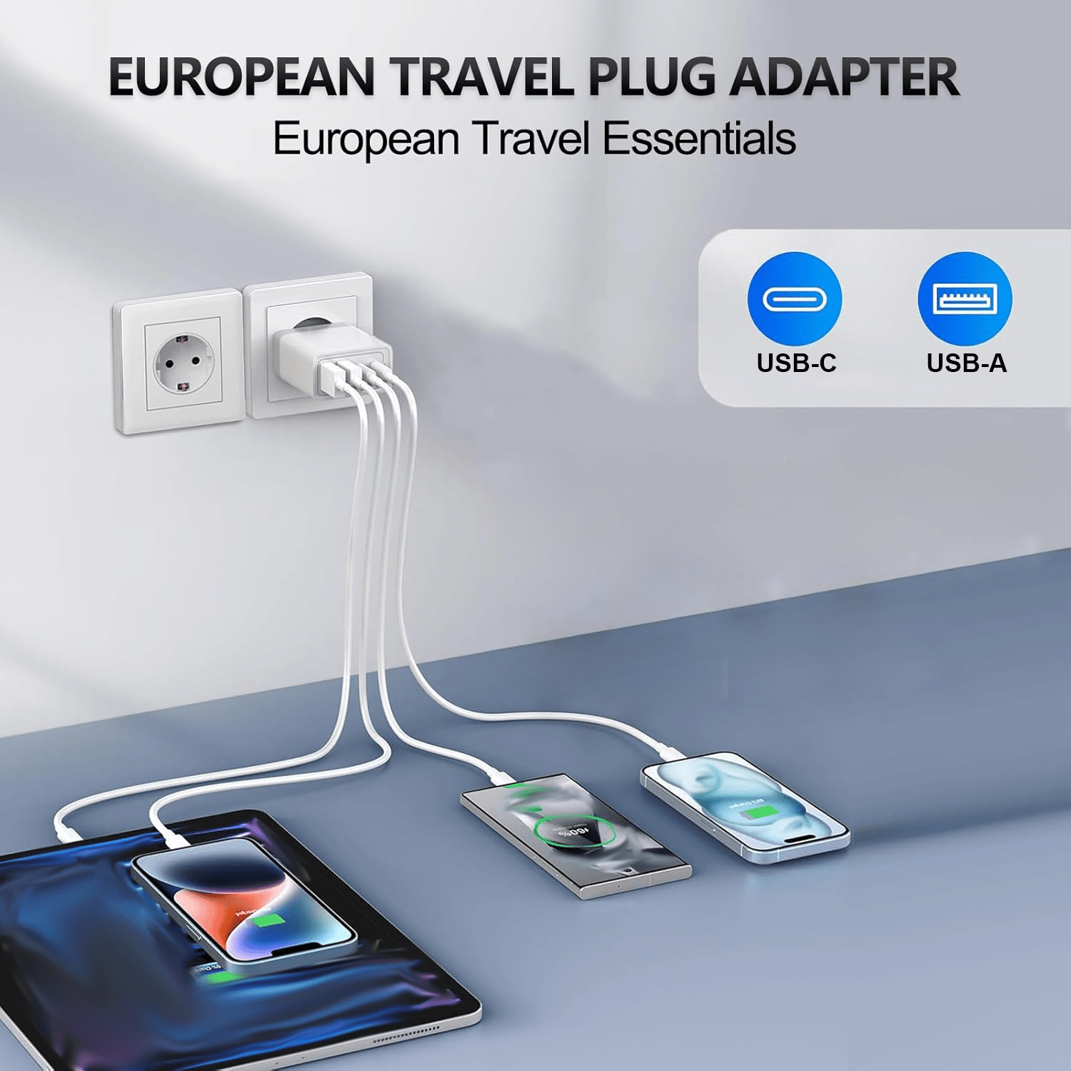 4-in-1 USB Charger Block: 2xType-C + 2xUSB-A Multi-Port Adapter for Muti Devices - for iPhone, Galaxy, iPad, Pixel