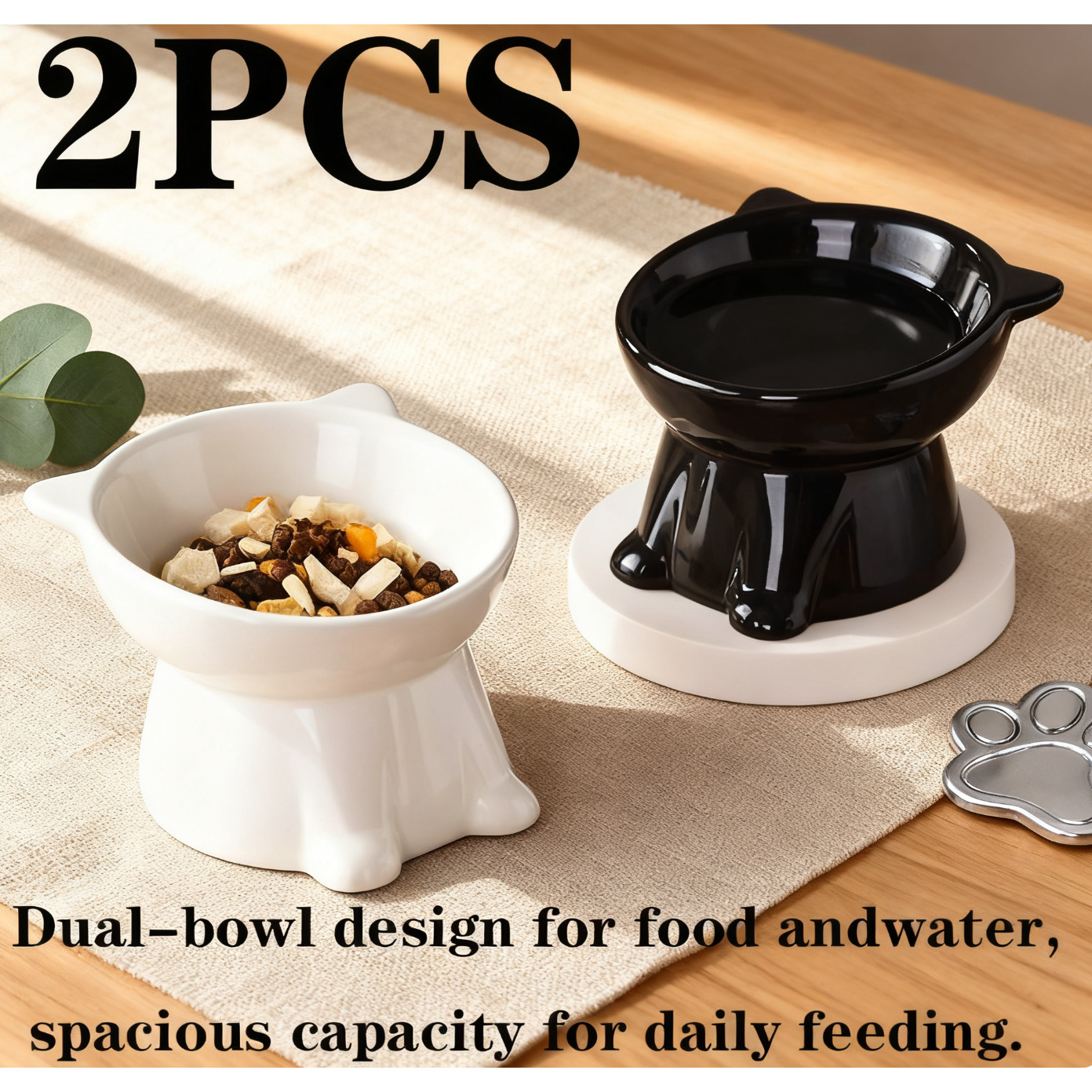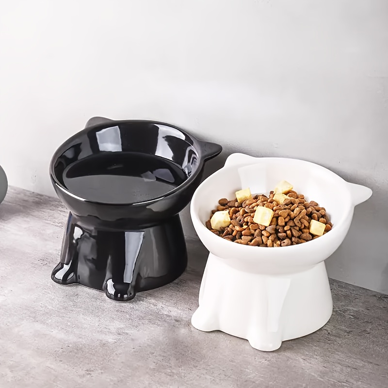 2pcs Set - Elegant Black/Pure White Elevated Pet Bowls with 15° Tilt – Anti-Spill Raised Pet Feeding Bowls, Designed to Protect Cervical and Spinal Health, Non-Slip Wide Base, Durable Plastic Material, Suitable for Cats and Small Dogs, for Both Wet