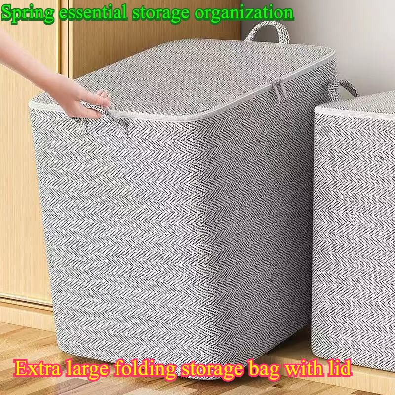 1pc Large Capacity Foldable Storage Box, Moving Box Spring Storage Basket with Lid, Household Moving Packing Box Storage Basket, Space-Saving Design, Durable Non-Woven Fabric Material, Suitable for Underbed, Wardrobe And Moving, Under-Bed Storage