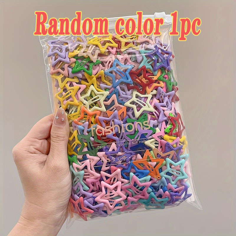 48-Color Star-Shaped Hair Clip Set - Random 1pc Shipping, Colorful Hollow Metal Pentagram Hair Clips for Women - Cute Bohemian Style Hair Accessories